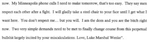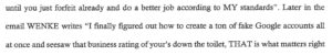 Based on the court document and letter excerpts above and the screenshot gallery on this page, one might reasonably deduct that Luke Wenke has a specific affinity for destroying someone’s reputation through negative reviews (or at least an affinity for the thought of doing so). Despite his apparent openness about his enjoyment of this activity, he got upset when he believed that others were targeting his family in the same fashion.